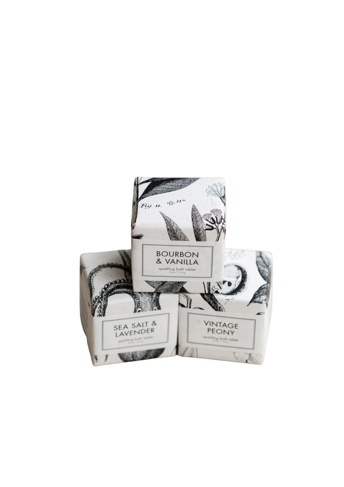 Sparkling bath tablet (4 oz cube) in Bourbon & Vanilla