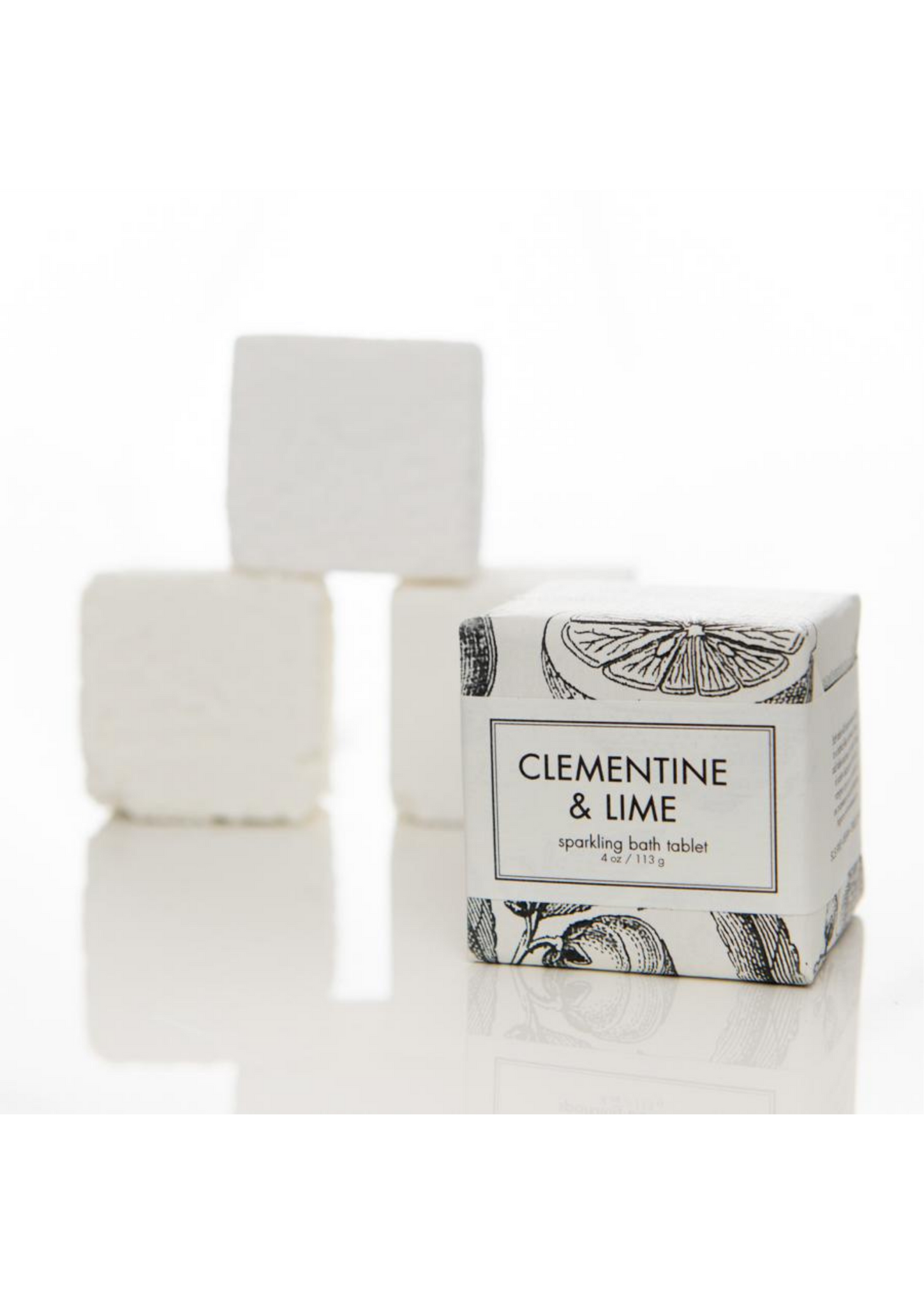 Sparkling bath tablet (4 oz cube) in Clementine & Lime