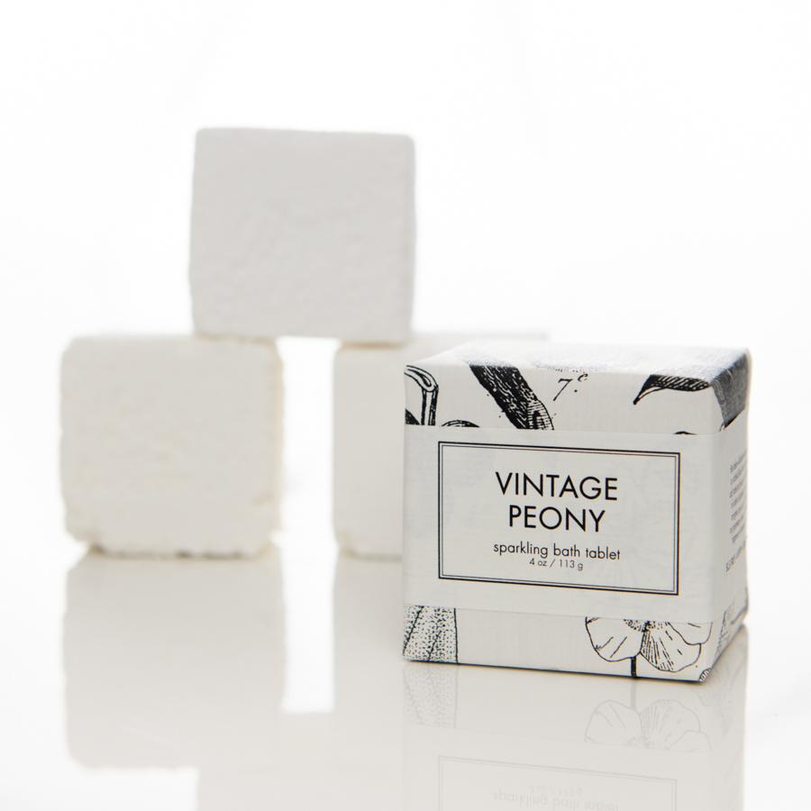 Sparkling bath tablet (4 oz cube) in Vintage Peony